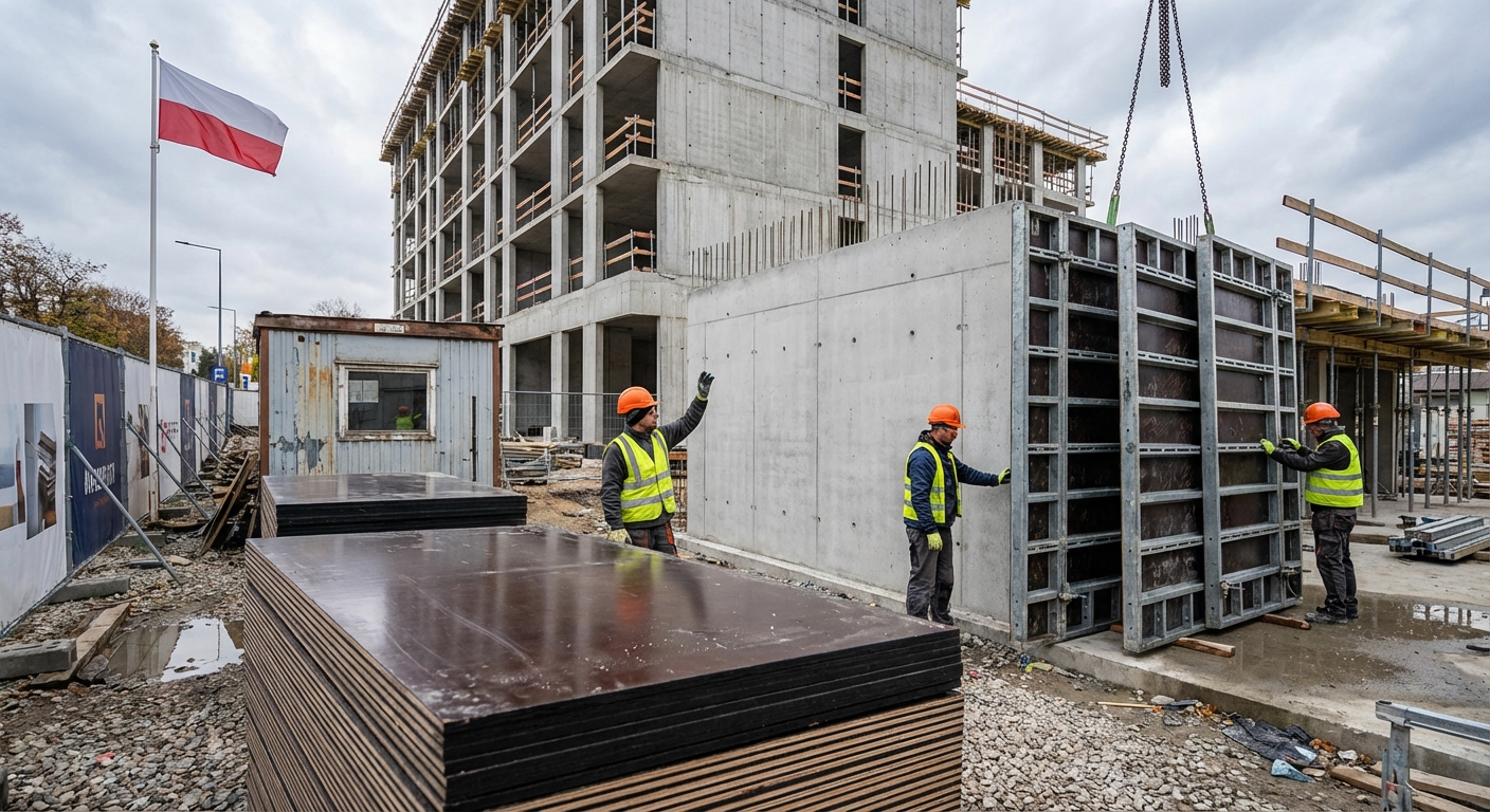 Poland is one of Europe's most active construction markets, with over 230,000 construction companies and a building sector contributing roughly 8% of national GDP. Demand for high-quality film faced plywood — known locally as sklejka szalunkowa or płyta szalunkowa — is driven by large-scale residential developments, infrastructure programmes, and commercial high-rise projects across Warsaw, Kraków, Wrocław, and beyond.