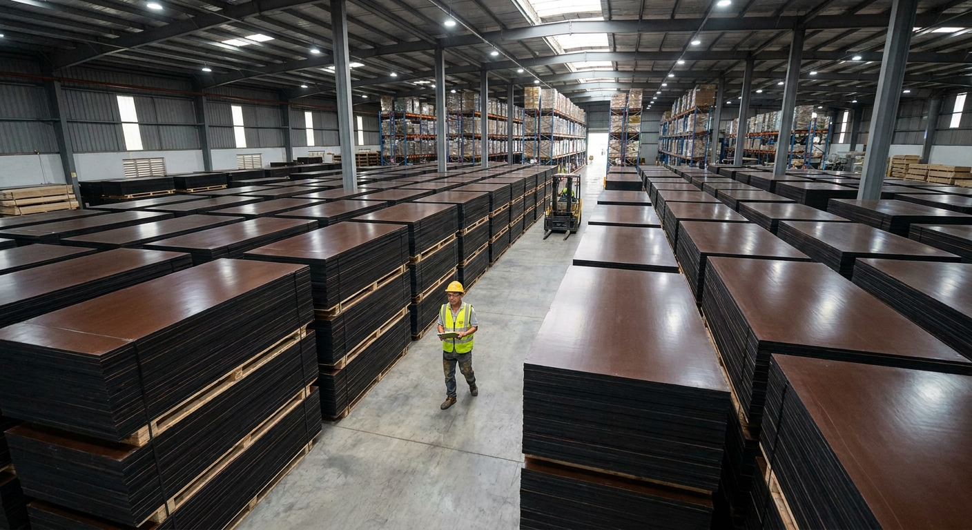 Formwork plywood is one of the highest-leverage decisions on a GCC construction site. The wrong panel softens in 45°C summer heat, delaminates after a handful of pours under coastal humidity, and disappoints on the architectural concrete that defines the towers, hotels, and infrastructure projects shaping Dubai, Riyadh, Doha, Muscat, Manama, and Kuwait City. The right panel cycles through twenty pours with the face film intact and arrives at Jebel Ali on a predictable timeline.