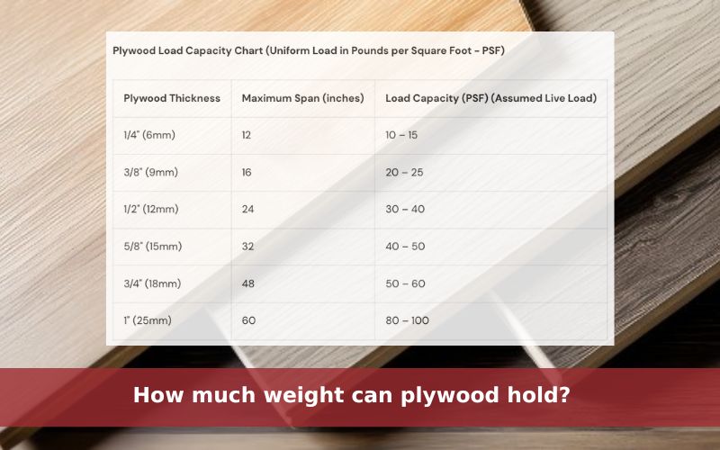 Wondering how much weight plywood can hold? The load capacity of plywood depends on its thickness, grade, and support structure. Whether you're using it for flooring, shelving, or structural applications, understanding its strength is crucial. Check out our plywood load capacity chart to see how different thicknesses from 1/4 inch to 1 inch perform under weight. Learn how to maximize durability and ensure safety for your projects!