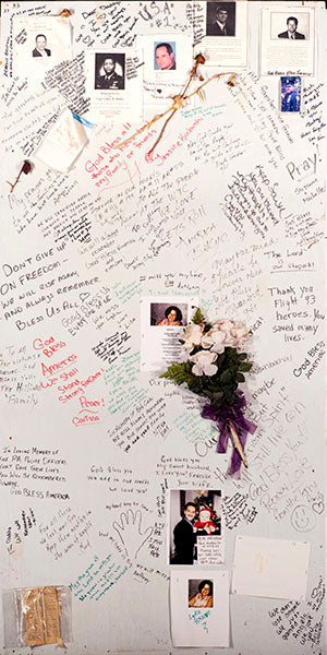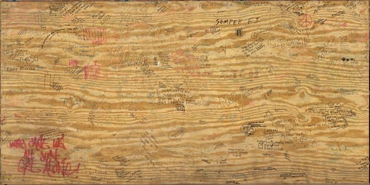 Joncrispinposts – In 2008, I was asked by the New York State Museum to photograph the panels that lined the Fulton Street viewing area overlooking Ground Zero. The 4′ x 8′ sheets of plywood were assembled and meant to act as a way to help keep people in line as they waited to view the site of the World Trade Center after the attacks of 11 September, 2001. Almost immediately people waiting on line started writing on the wood and attaching photos and other momentos in memory and support of the people who died that day. The panels were never meant to be permanent, but they became such an important document of the attacks that Craig Williams worked tirelessly to insure some record of their existence be created. The entire collection of panels was shipped to the museum’s Rotterdam, NY storage facility where we photographed each one. Since the writing was so small, and I was worried about the camera’s ability to resolve the all detail, I decided to shoot each panel in 3 sections and then stitch the images together to make one large file.